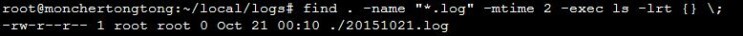 # find -name "*.log" -mtime +2 -exec ls -lrt {} \;