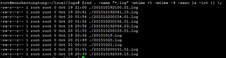 # find -name "*.log" -mtime +1 -mtime -4 -exec ls -lrt {} \;